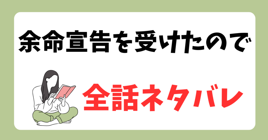 こんにちは。漫画リサーチ部屋、運営者の「塩猫」です。 余命宣告を受けたので私を顧みないネタバレ全話で検索しているあなたは、あらすじネタバレや最新話の展開、何話まで出てるのか、全何話で完結なのか、結末や最終回やラストがどうなるのかまで、まと... -