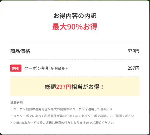 割引やクーポンは時期で変わるので、ここも断定はしません。ですが、試し読み→クーポン確認→買うの流れにすると、いちばんストレスが少ないです。