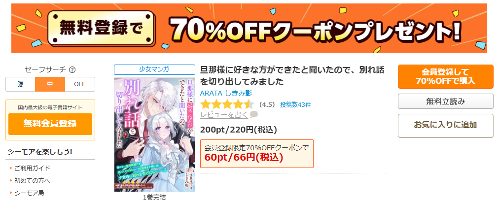 そして読むなら、迷いにくくて安全なコミックシーモアが手堅いかなと思います。試し読みで空気感を確認してから買えるのも安心ポイント。