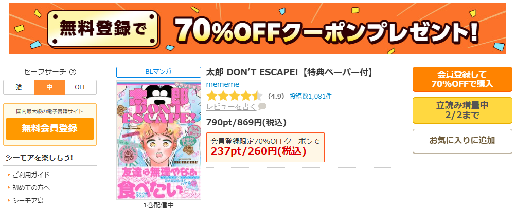 特に太郎DON’T ESCAPEは、太郎の表情や間(ま)で刺してくる場面が多いので、文字情報だけでは伝わりきらない部分がある。だから「まず試し読みして、合えば買う」が一番コスパ良いと思いますよ。