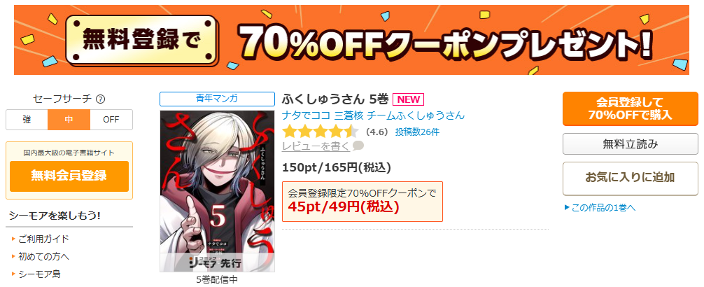 で、ここからの読み方の結論は変わりません。読むなら、導線が分かりやすくて話売りで追いやすいコミックシーモアがおすすめです。