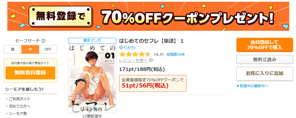 シーモアなら、70%OFFクーポン(上限2,000円複数冊可能)でお得に読めます