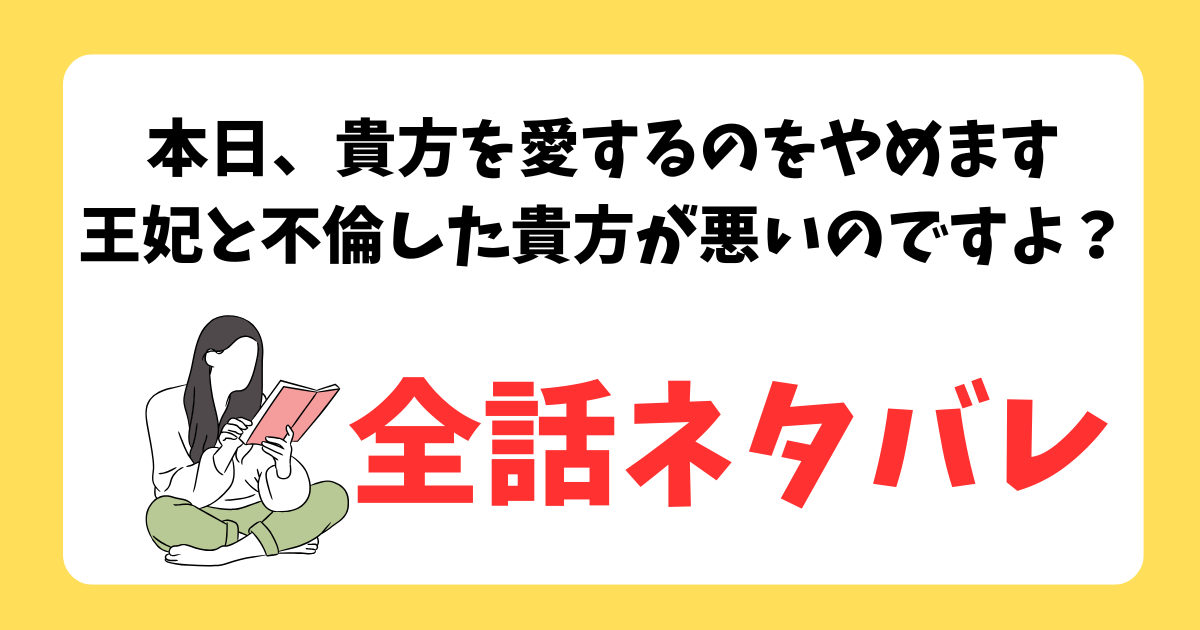 「本日、貴方を愛するのをやめます 王妃と不倫した貴方が悪いのですよ?」のネタバレで検索しているあなたは、あらすじや全話ネタバレ、最新話がどこまで進んでいるか、1話から6話の流れ、最終回や結末、完結しているのかが気になりますよね。