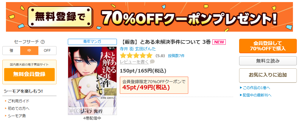シーモアの70%OFFクーポンなら、165円→49円で見れちゃいます