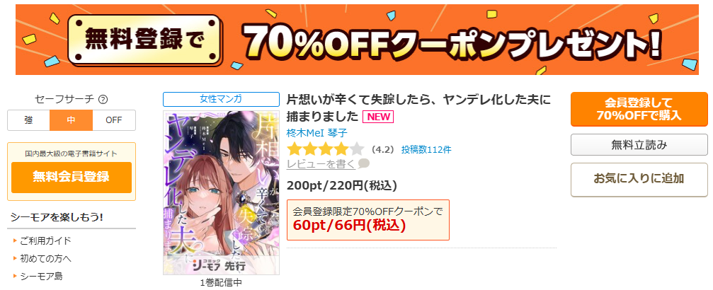 しかし、シーモアなら70%OFFクーポンで、66円で読めちゃいます