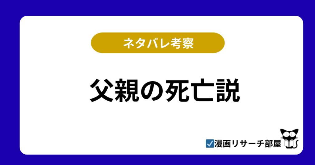 公式には行方不明のままですが、読者の間では父親死亡説も根強く語られています。父親ネタバレまとめや考察記事を見ていると、「たぶんもう生きてはいないだろう」という受け止め方をしている人も少なくありません。