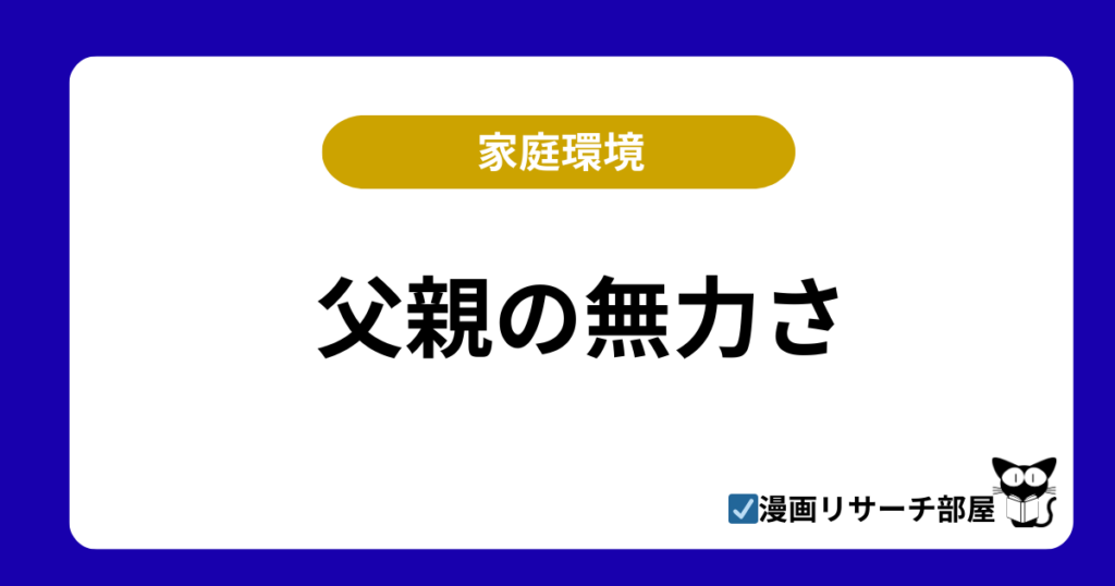 特に、「父親は悪人なのか、それともただ弱いだけなのか」という評価は、読者によってかなり分かれます。なので、一度感情を横に置いて、「設定としてどう描かれているのか」をフラットに見ていくイメージで読み進めてもらえると、モヤモヤがほどけやすいかなと思います。