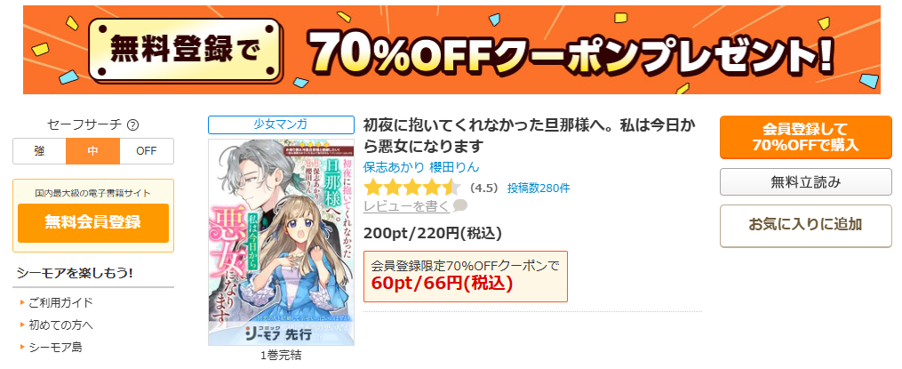 ただ、シーモアなら、70%OFFクーポンでたったの66円で読めますよ
