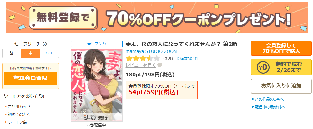 そして、読む場所で迷うなら、私はコミックシーモア基準をおすすめします。配信状況(最新話は何話まで)と価格、無料表示までその場で確認できて、迷子になりにくいからですね。ネタバレを読んでから買う派でも、買ってから整理したい派でも、入口を固定するだけでストレスが減りますよ。